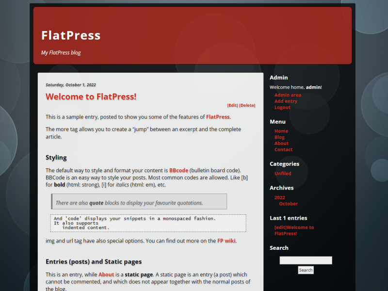 Das ist ein Beispiel-Beitrag. Er zeigt dir einige Funktionen von FlatPress.